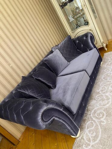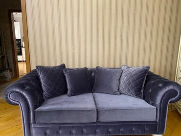 Türkiyə istehsalı Xüsusi dizaynlı klassik üslubda iki nəfərlik divan - Rəng: tünd boz (antrasit) - Material: yumşaq məxmər parça, toxunuşda həssas və parlaq effektli - Üslub: Chesterfield ilhamlı ...