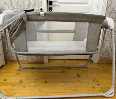 Körpənin rahat və təhlükəsiz yatması üçün funksional, müasir dizaynlı beşik.