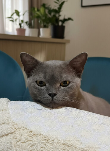 Scottish Fold tipli, yoğun tüklü quyruqlu tüklü pişik - Qulaqlar: tipik qatlanan (folded) qulaqlar - Rəng və naxış: tünd qəhvəyi–boz “tabby” zolaqlar, sinə və qarında açıq tonlar - Tük tipi: sıx v...