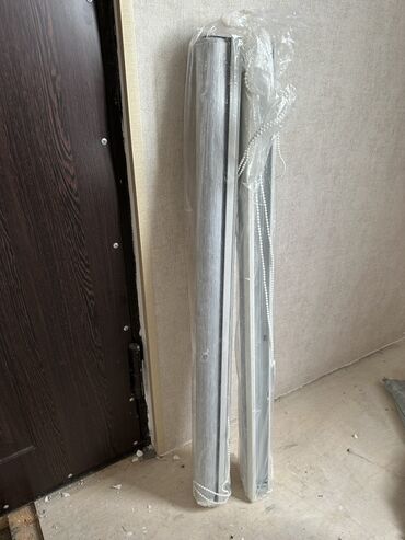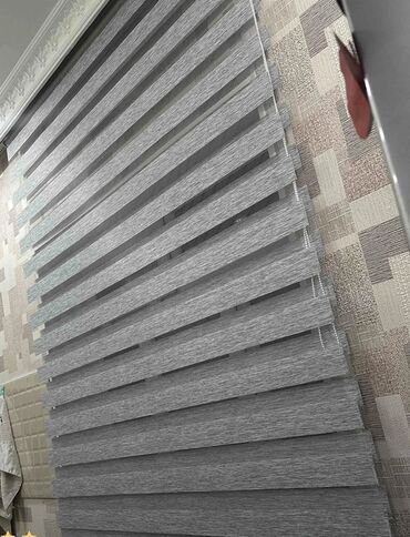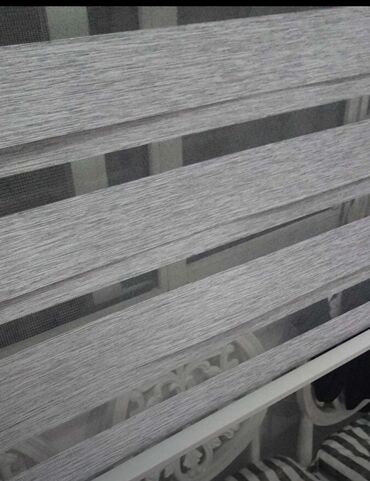 Şəkillərdə həm quraşdırılmış, həm də rulon şəklində hazır pərdələr göstərilib. Boz neytral ton mebel və divar rənglərinə asan uyğunlaşır.