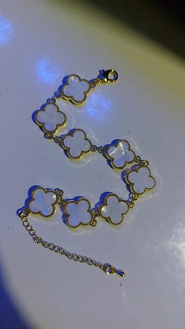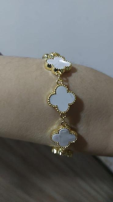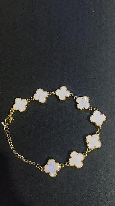 Dördyarpaq yonca motivli zərif qolbaqlar kolleksiyası - Material: qızılı rəngli zəncir və yonca formalı asmalar - Rənglər: yaşıl, qırmızı, qara, ağ (ana mirvari görünüşlü) və qızılı teksturalı var...