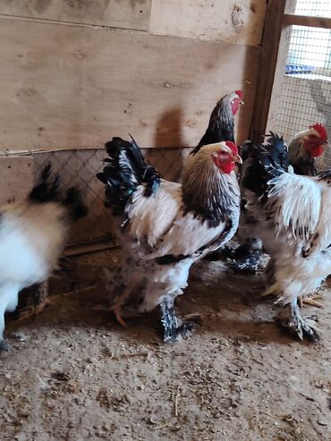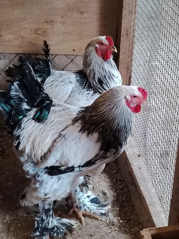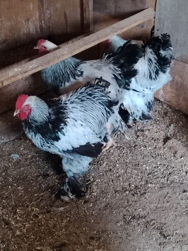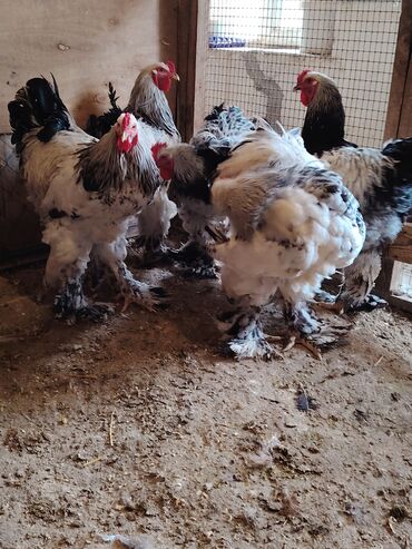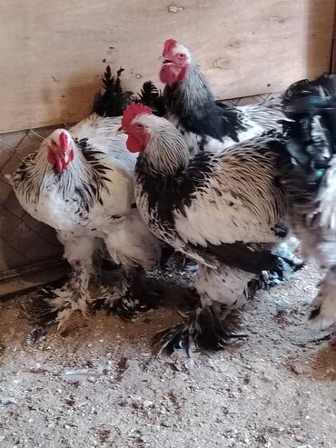 Brahma cinsli xoruz – “Light” 7 aylıq - Geniş bədən quruluşu, hündür boy və qalın lələk örtüyü - Ayaqları tam tüklü, güclü və möhkəm - Boyun hissəsində qara-ağ naxışlı yaka, quyruqda tünd yaşıl pa...