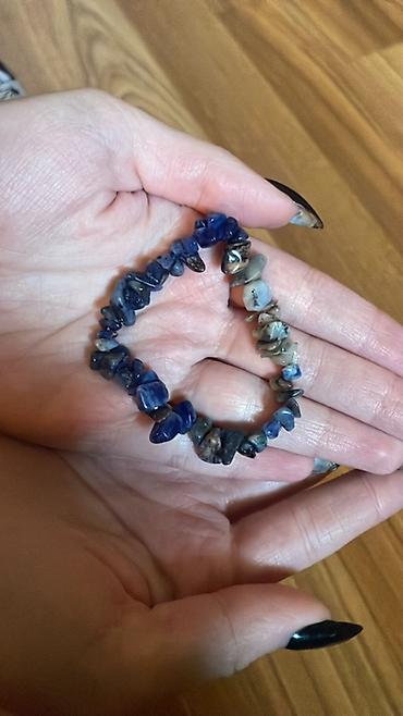 Təbii daşlardan hazırlanmış elastik bilərzik - Material: Qeyri-bərabər formalı təbii daş çipləri (mavi, lacivərd və boz-ağ tonlarının qarışığı). Daşların səthində təbii damarlar və ləkə effektləri...