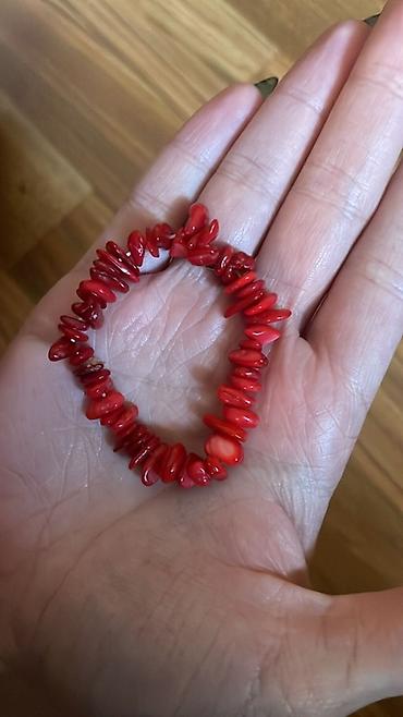 Qırmızı koral üslubunda daşlardan və mavi dekorativ çiplərdən əl ilə hazırlanmış qolbaq. Xüsusiyyətlər: - Dizayn: qırmızı daş qırıntıları arasında periodik yerləşdirilmiş mavi, ürəkvari/oval forma...