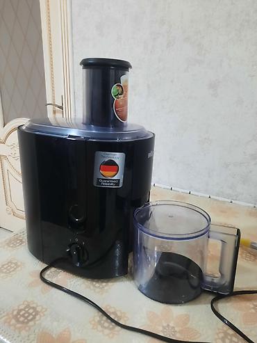 Braun şirəçəkən - Rəng: qara və paslanmayan polad ön panel - “German Technology – Guaranteed Reliability” nişanı - Yuxarı hissədə geniş meyvə-tərəvəz giriş borusu və itələyici - Ön hissədə şirə çı...