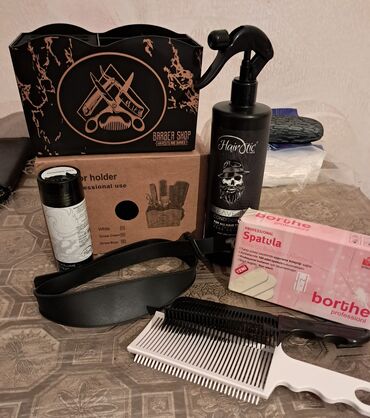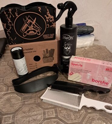 Bərbər və saç stilistləri üçün peşəkar aksesuar və məhsul dəsti