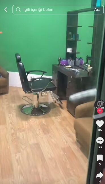 - İnteryer: laminat döşəmə, yaşıl divar fonu, yanında rahat gözləmə kresloları.