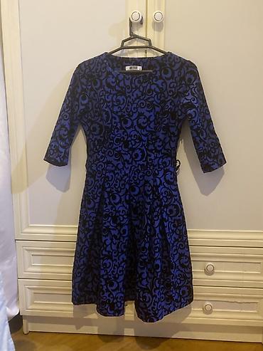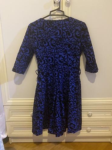 Mavi çiçəkli qadın donu razmer.s.m.36.38 - Model: boğazda bant/bağlama detallı, A-kəsim ətək - Rəng və naxış: mavi fon üzərində xırda çiçək printi - Yaxa: bağlamalı (qalstuk yaxa effekti) - Qol: u...