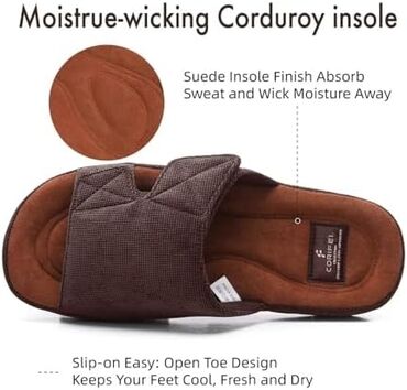 (Новые)Мужские тапочки с открытым носком CORIFEI, регулируемые домашние тапочки с поддержкой свода стопы, с перекрестными полосками, противоскользящие для использования в помещении и на открытом воздухе