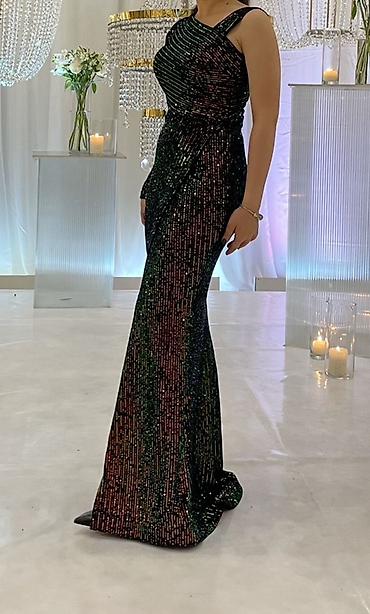 Zərif krem rəngli uzun don. 160 azn e modalinda magazasindan alinib. 1 defe toya geyinilib - Dizayn: Asimmetrik drapeli ön hissə, boyuna qədər qapalı yaxa, sağ döş hissəsində iri dekorativ bəzək (...