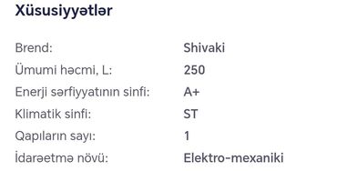 Dərin dondurucu Kamera Biryusa firması Rusiya istehsalıdır 1iL Rəsmi zəmanət veriLir Tutumu - 600 - Litr Ölçülər: Uzunluğu - 2 metr , 4 Sm Eni - 68 sm Hündürlük - 85 sm YENİDi. Say çoxdu Digər ölç...