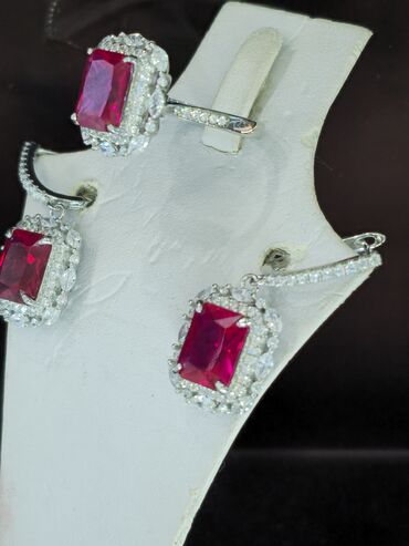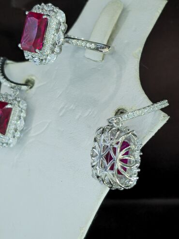 Brilliant model gümüş dəst sırğa üzük 925 prob daşlar təbii dağ bülluru brilliant ogranka ile Rubin
