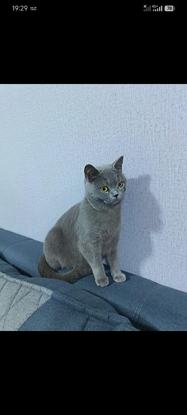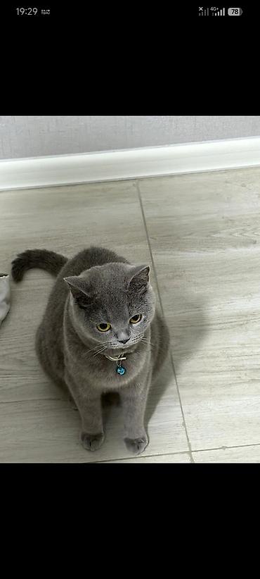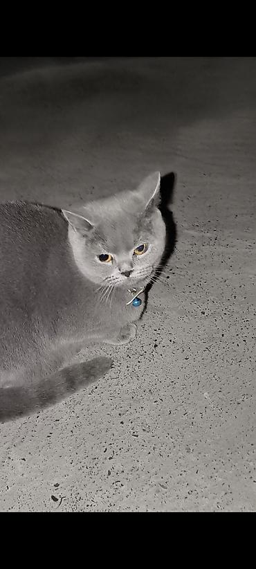 Britan qısa tüklü tipli, boz rəngli pişik.