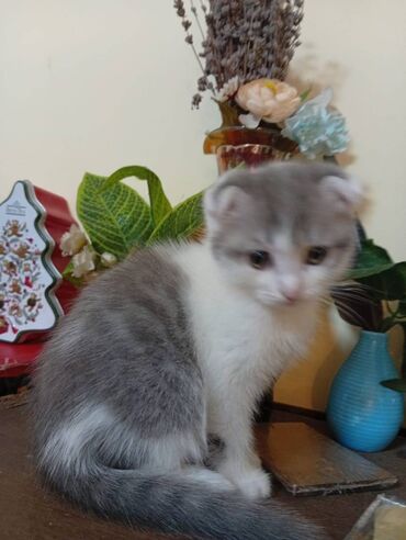 Yarıcins şıltaq və mehriban qız pişik balaları. Qonşumuz tərəfindən həyatlarının ilk həftəsində çölə atılmışdırlar 😢 Anaları - Şotland. Qum tərbiyəsi var. 4-5 aylıq, birə və qurd dərmanı verilib....