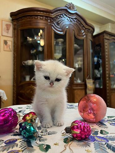 Britan pişiyi balası - Cins: Britan (British Shorthair) - Rəng: krem/ağ tonlarında, qulaqlarda və quyruqda yüngül kölgələnmə - Gözlər: mavi-boz - Xəz: sıx, qısa, yumşaq - Xasiyyət xüsusiyyətləri: ...