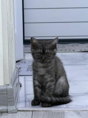 Britan tipli boz balaca pişik balası - Rəng: bərk boz (blue/grey), qısa və sıx tüklü - Gözlər: iri, açıq boz-mavi ton - Qulaqlar: kiçik və yığcam, başla harmonik - Bədən quruluşu: yığcam, qalın pə...