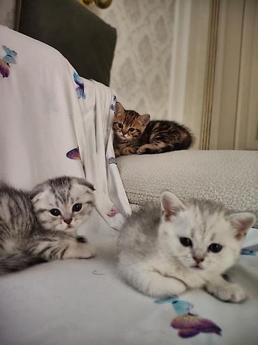 Şirin balaca pişik balaları - Cins: Şotland qıvrıqqulaq və düzqulaq qarışığı (şəkillərdə həm qıvrıq qulaq, həm də düz qulaq balalar var) - Rənglər: qızılı shaded, krem, gümüş/boz, mavi (blue) - Ya...