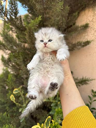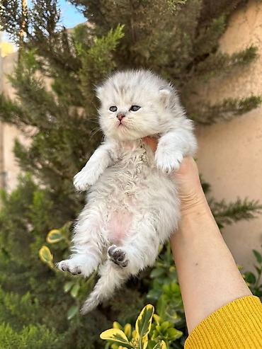 Şotland pişiyi balaları - Cins: Şotland (Scottish) - Rəng: gümüşü-boz (shaded/smoke effektli), ağ alt tüklər - Gözlər: iri və ifadəli - Xasiyyət: sakit, mehriban, qucağı sevən; ev şəraitinə uyğun ...