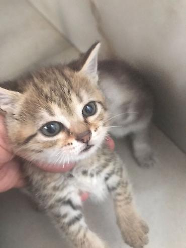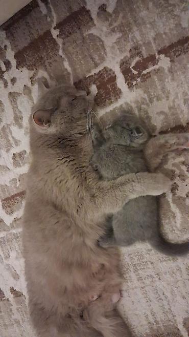 Əlavə qeyd: şəkillərdə həm balalar, həm də ana pişik göstərilib; balaların boz rəngli, yumru sifətli və qıvrıq qulaqlı görünüşü ilə seçilən Britaniya/Scottish tipli xarakterik cizgiləri var.