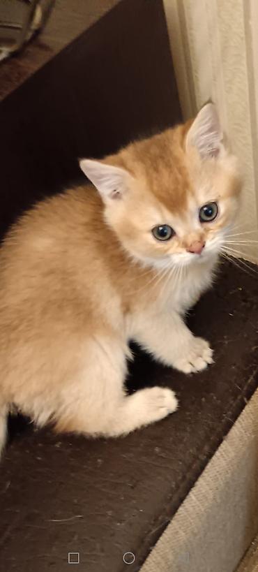 Qızılı (gold) rəngli Şotland/Şinşilla tipli balaca pişik – 3 aylıq Xüsusiyyətlər: - Yaş: 3 ay - Rəng: qızılı kölgəli (gold shaded), böyük mavi gözlər - Xasiyyət: mehriban, insanla ünsiyyəti sevir,...