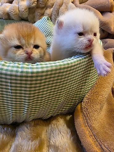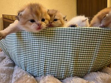 Britaniya qısa tüklü balalar – qızılı/şinşilla (golden shaded) rənglər - Cins: British Shorthair (qısa tüklü) - Rənglər: qızılı shaded (qarma-qarışıq tünd zolaqlı), qızılı solid və tünd qızılı ton...