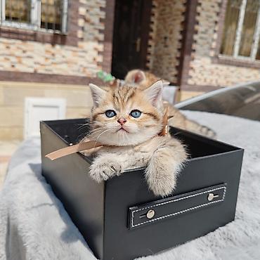 Britan pişiyi balaları – Golden shaded (qızılı rəngli) gözəl yunu və iri mavi‑yaşıl gözlərlə.