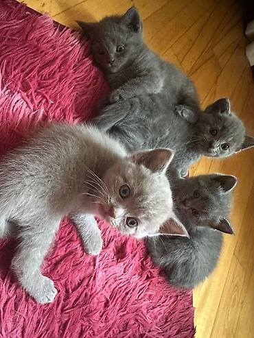 Brit qısa tüklü tipində, boz və açıq krem-boz rəng palitrasında balaca pişiklər.