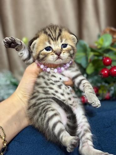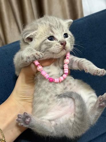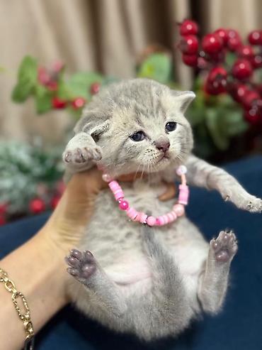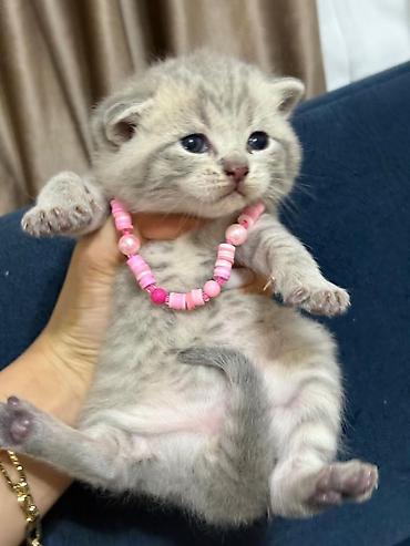 British Shorthair Scottish Fold bala pişik - Cins: Scottish Fold (qatlanmış qulaqlar), British tipli yumşaq tüklü kürk - Rəng: gümüşi-boz tabby, sinədə ağ ləkə - Kürk: qısa və sıx, baxımı asan, az...