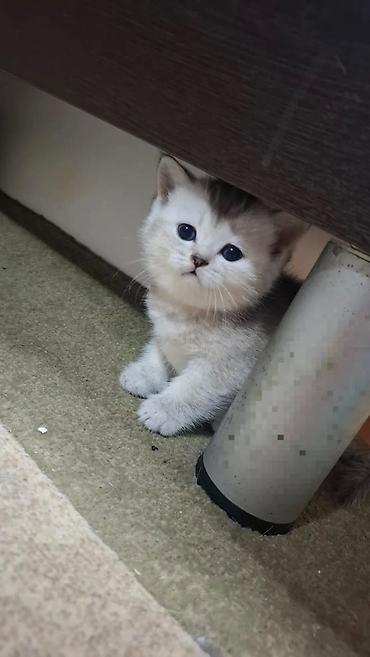 Britan pişiyi balaları – şotland tipli qatlanan qulaqlı (Scottish Fold) görkəmi ilə. Xüsusiyyətlər: - Rənglər: tam ağ, mavi/boz (blue), krem‑boz. - Qısa, sıx və ipək kimi tüklər; yumru baş, iri if...