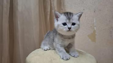 Britaniya qısa tüklü (British Shorthair) balaları - Rəng: bərk boz (blue/boz kürk, sarı‑yaşıl gözlər). - Qulaqlar: kiçik, yuxarıda yerləşmiş, yuvarlaq uclu. - Kürk: sıx, yumşaq, plüş kimi. - Bədən...