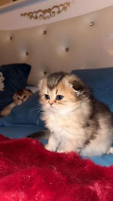 Məhsul: Ata gold şınşıla ana skotiş fold Təsvir: Balalar Yanvarın 19 u doğulub. Dişidi. 1 dənə qaldı 5 ini aldılar. Oynağandı. Tam sağlamdı. Gözləri açıq yaşıl olacaq. Tiktokda 400-500 satılı...