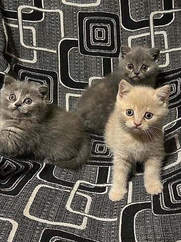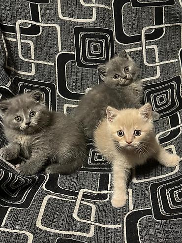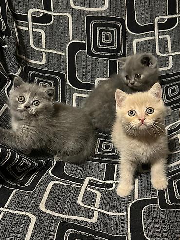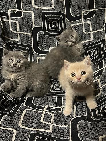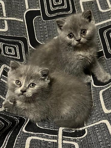 Şəkillərdə üç bala görünür: iki mavi/boz balanın sinəsində açıq ləkələr var, biri isə krem rənglidir. Hamısının bədən quruluşu yığcam, pəncələri qalındır, bu da British Shorthair xəttinə xasdır.