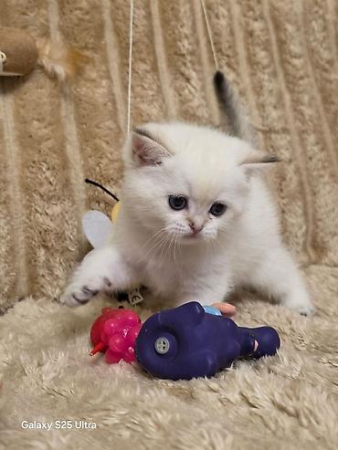Britan pişiyi balası – krem-ağ rəngli, mavi-boz gözlü