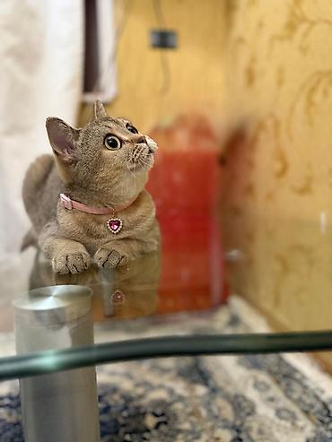 Britan tipli pişik (qızıl-shaded rəng) – evdə böyüdülmüş, çox mehriban və oyuncaqdır. Şəkillərdə həm balalıq dövrü, həm də böyümüş halı görünür.