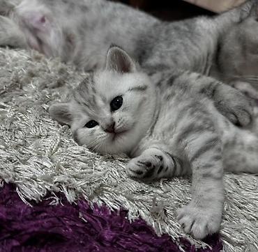 Şotland Fold bala pişik - Cins: Şotland Fold (qatlanmış qulaqlı) - Rəng: Bərk boz (blue) - Yün: Qısa, sıx və ipək kimi yumşaq - Gözlər: Böyük, yumru ifadəli - Xarakter: Mehriban, sakit və ev şərai...