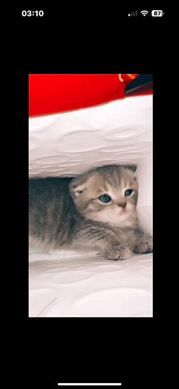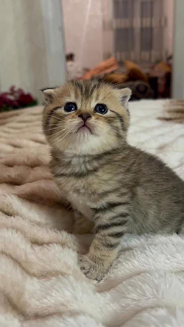 Scottish Fold balaca pişik balaları - Cins: Scottish Fold (qulaqcıqları yuxarı doğru yarıqat, yuvarlaq baş quruluşu) - Rənglər: - Qızılı-krem tabby: iri yuvarlaq mavi-boz gözlər, zərif zolaqlar,...