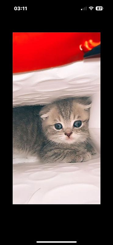 Şotland Fold bala pişik - Cins: Şotland Fold (qatlanmış qulaqlı) - Rəng: Bərk boz (blue) - Yün: Qısa, sıx və ipək kimi yumşaq - Gözlər: Böyük, yumru ifadəli - Xarakter: Mehriban, sakit və ev şərai...Giriş•Qeydiyyat