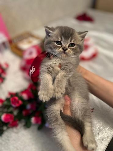 Şotland Fold bala pişik - Cins: Şotland Fold (qatlanmış qulaqlı) - Rəng: Bərk boz (blue) - Yün: Qısa, sıx və ipək kimi yumşaq - Gözlər: Böyük, yumru ifadəli - Xarakter: Mehriban, sakit və ev şərai...