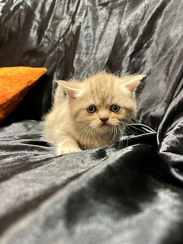Britan tipli şirin pişik balaları - Rəng: krem/bej tük örtüyü, iri mavi-boz gözlər - Cins: qısa tüklü, yumşaq və sıx palto - Xarakter: mehriban, oyunbaz, insanla ünsiyyəti sevir; qucaqda sakitləşi...