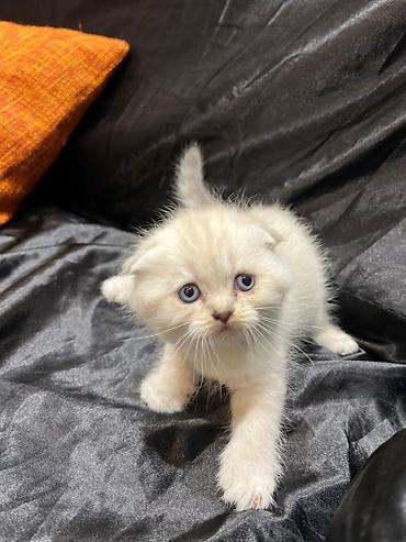 Britaniya pişiyi balası – krem/qəhvəyi (lilac) rəng - Cins: British Shorthair (qısa tüklü), fotolarda həm qatlanan, həm düz qulaqlı balalar görünür - Yaş: körpə - Xasiyyət: sakit, mehriban və oynaq...