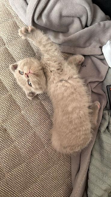 Şotland qıvrıqqulaq (Scottish Fold) balası - Rəng: açıq boz (blue/grey) bərk ton - Qulaqlar: qatlanmış - Tük quruluşu: yumşaq, sıx və puf - Gözlər: mavi-boz çalar - Xasiyyət: sakit, mehriban, quca...