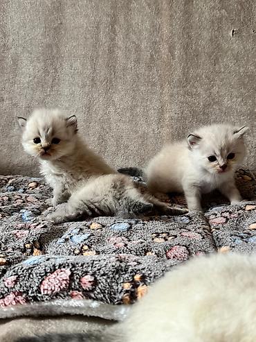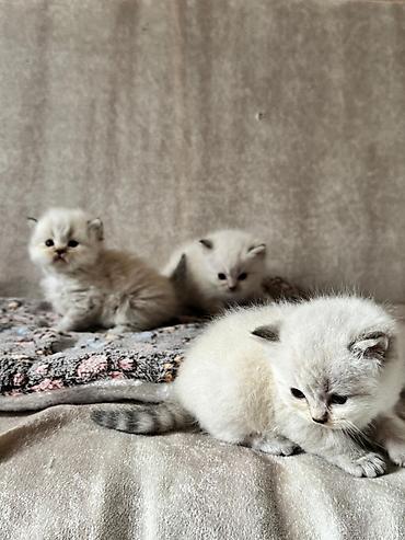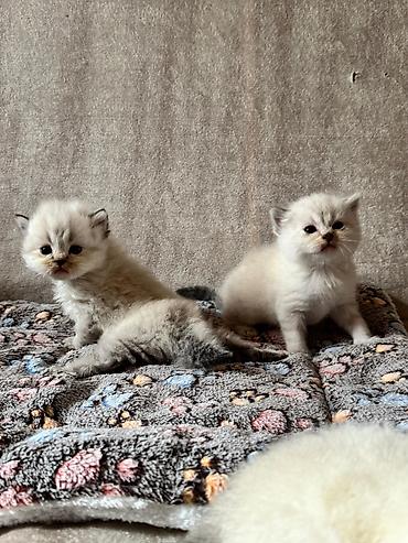 Britaniya tipli balaca pişiklər – krem/ağ rəngli tüklər, qulaqlarda və quyruqda tünd boğazlanma. Yumşaq, sıx yun örtüyü, qısa və qalın quyruq, iri yuvarlaq gözlər. Ev şəraitində böyüdülürlər, qum qabı və dırnaq itiləyicisinə öyrəşməyə başlayıblar. Sakit və mehriban xasiyyət, qucağı sevirlər, uşaq və digər ev heyvanları ilə uyğunlaşmağa meyllidirlər. Möhkəm bədən quruluşu, enli pəncələr, qısa pəncəli. Yeməkdə seçici deyillər, yaş və quru yeməklərə keçid üçün uyğundurlar. Şəkillərdə eyni balalardandır: qar kimi açıq rəng, üz-göz və pəncələrdə zərif şokolad/kül rəngli kölgələr. Ev pişiyi kimi sakit, təmiz və gigiyenik vərdişlərə uyğun balalardır.
