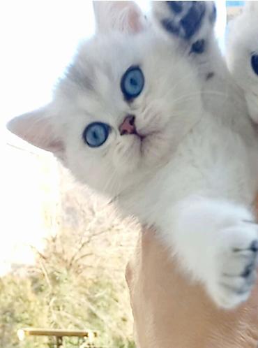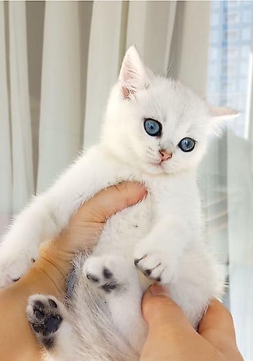 Brit qısa tüklü (British Shorthair tipli) balalar - Rənglər: tam ağ (başda balaca boz ləkələr) və gümüş-bənövşəyi tabby (boz zolaqlı). - Göz rəngi: mavi-boz tonları. - Yumuşaq, sıx, qısa tüklü ört...