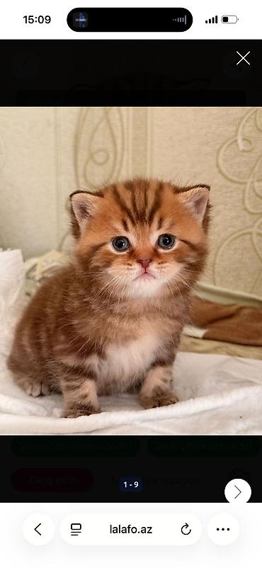 Scottish Fold balaları - Cins: Scottish Fold (qulaqcıqları yığılmış) - Rəng: qızılı/cream kölgəli, tük örtüyü sıx və yumşaq - Gözlər: iri, mavi-boz tonlarda - Xarakter: mehriban, sakit, qucağı sev...