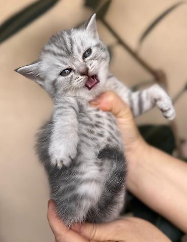 Britaniya qısa tüklü, gümüş tabby naxışlı bala pişik