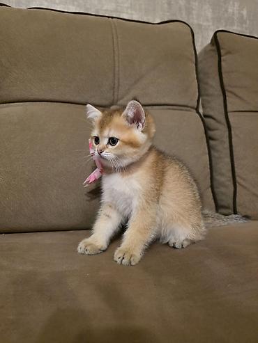 Britan qızılı şinşilla rəngli balaca pişik - Cins: British Shorthair (golden shaded/ny12 tipli rəng) - Təsvir: Yumşaq, sıx və parlaq qızılı-krem yun, ağ sinə və qarın, quyruq ucunda tünd “pompon” ...Giriş•Qeydiyyat