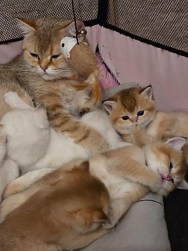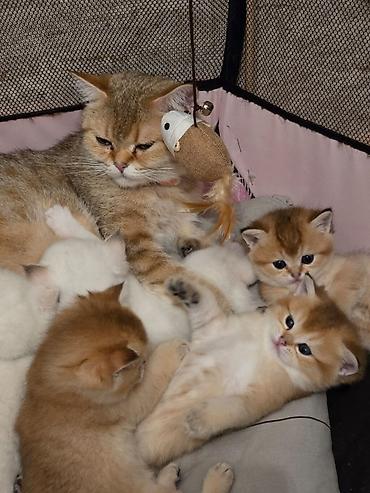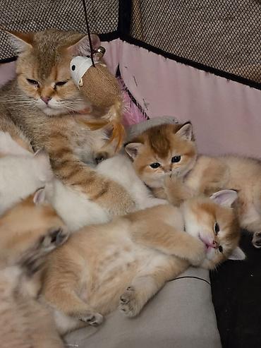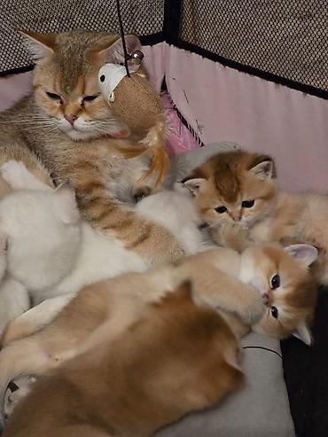 - Cins: British Shorthair (qızılı shaded/golden variantı; bəzi balalarda krem‑ağ rəng notları)