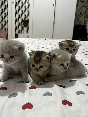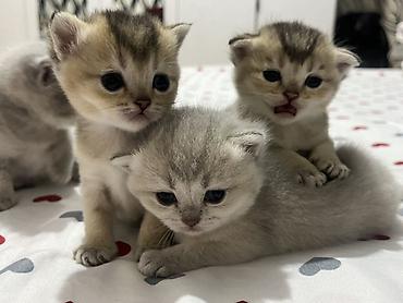 British qızıl rəngli pişik balası - Cins: British Shorthair (golden shaded/shell rəng) - Yaş: təxminən 1–2 ay - Xüsusiyyətlər: iri mavi-boz gözlər, yumşaq sıx tüklü kürk, yuvarlaq baş və kiçik qul...