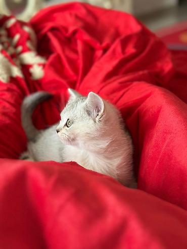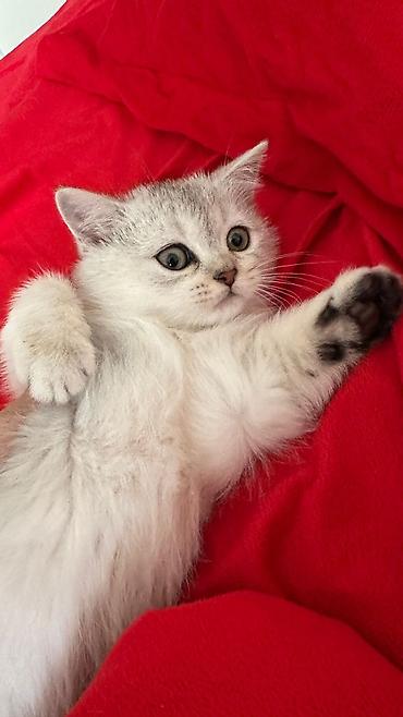 Şəkillərdə balanın gümüş-ağ tükləri və kontrastlı pəncə ucları aydın görünür. Rahat, təmiz ev mühitində böyüyür və insanla təmasa meyillidir. British Shorthair cinsinə xas möhkəm bədən quruluşu və yuvarlaq baş forması var.