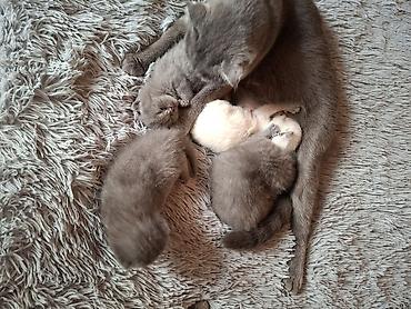Britan pişiyi balaları – boz (blue) rəng - Cins: British Shorthair tipli - Rəng: vahid boz (blue), sıx və parlaq yun - Xüsusiyyətlər: yumru baş, iri ifadəli gözlər, qısa və qalın tüklər, güclü bəd...